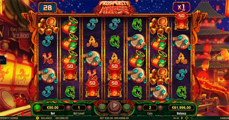 Played across 28-58 paylines, Prosperity Horse leans into traditional themes of luck and fortune, pairing Asian-inspired visuals with gameplay that builds steadily from the base game into the bonus round, leading towards an exciting crescendo.
