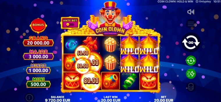 “Coin Clown: Hold & Win” combines a colorful circus theme with strong Hold & Win mechanics and multiple features that keep players engaged. Spin the reels, collect the coins, and enjoy the show.