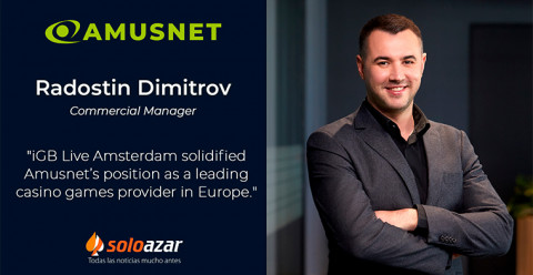 (Amsterdam, Exclusivo SoloAzar) - Radostin Dimitrov, Director Comercial de Amusnet, concedió una entrevista a SoloAzar en el marco de la reciente feria iGB L!VE celebrada en Amsterdam. El Sr. Dimitrov habló sobre las principales novedades presentadas en el evento, sus últimas tragamonedas y juegos de casino en vivo. También comentó sobre el mercado local y los logros de la compañía durante esta feria de alto nivel, entre muchos otros temas.